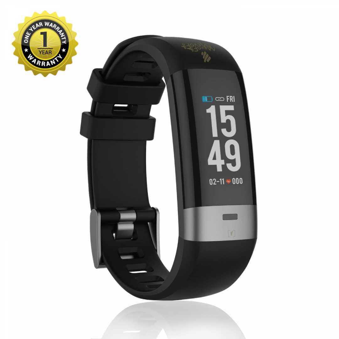 The smart looking fitness band comes with a colored display which makes it easy to read your daily stats including all day activity tracking - steps, calories, distance, sleep, HR, BP, ECG, & PPG.